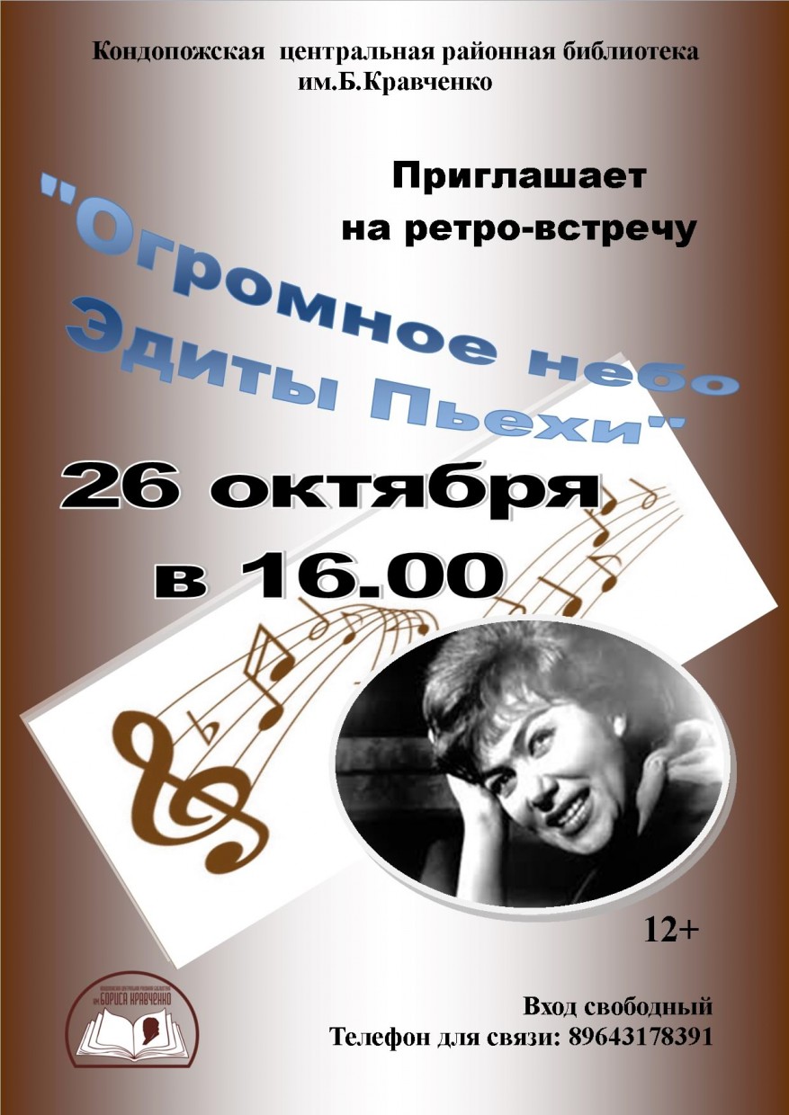 Приглашаем на ретро-встречу "Огромное небо Эдиты Пьехи" 26 октября в 16.00. Вход свободный 12+