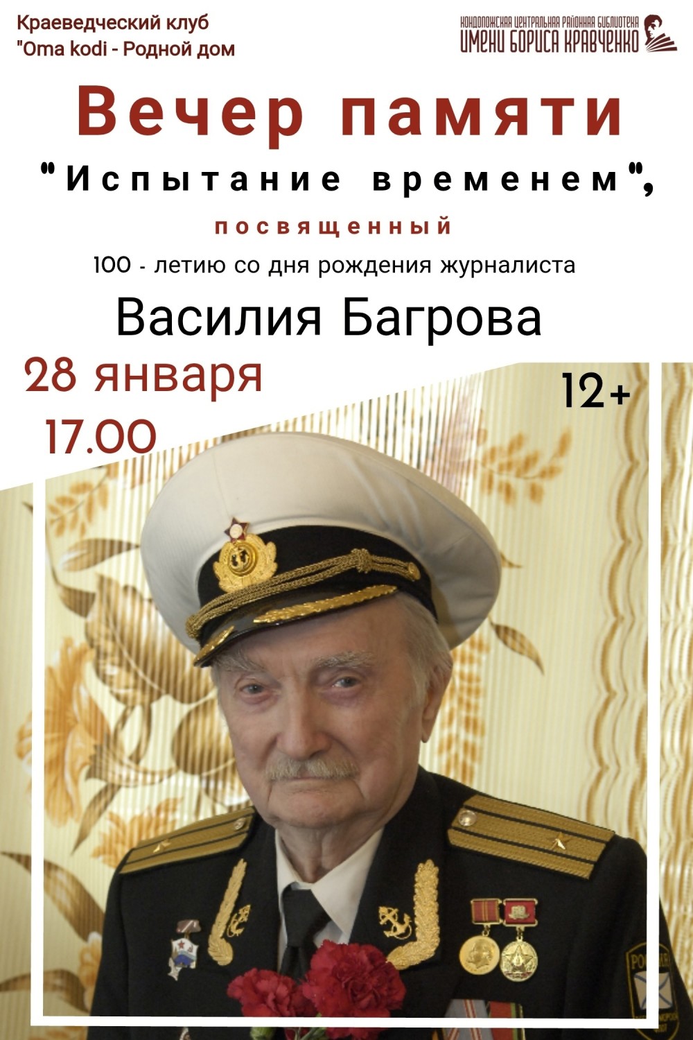 Приглашаем на вечер памяти "Испытание временем", посвященный 100-летию со дня рождения журналиста В.Багрова. 28 января в 17.00 12+