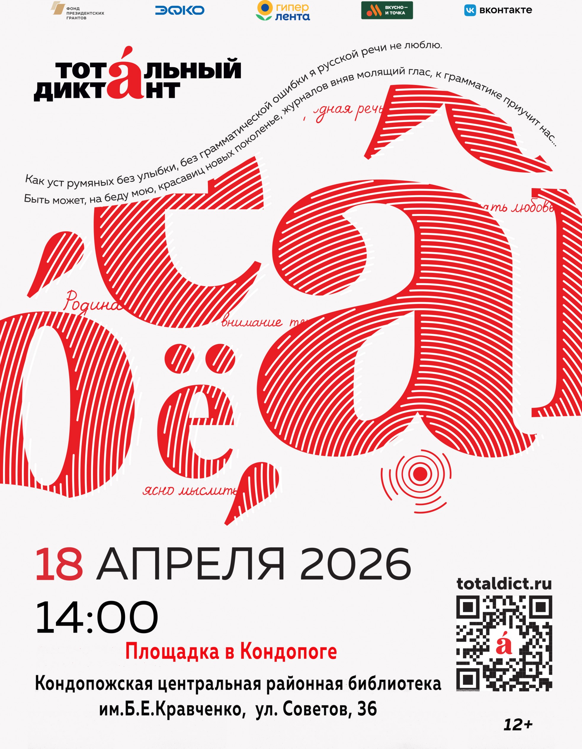 Всех любителей и ценителей русского языка ждем 18 апреля в 14.00. Будем писать Тотальный диктант. Проверим свои знания и получим новые!