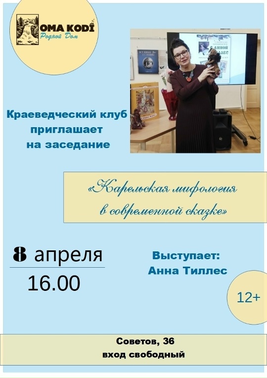 Дорогие друзья! Краеведческий клуб "Oma kodi-Родной дом" приглашает на встречу с Анной Тиллес 8 апреля в 16.00, 12+