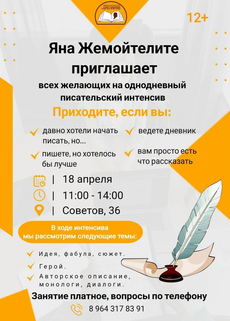 Дорогие друзья! Обратите внимание, впервые в нашем городе однодневный писательский интенсив от известного карельского писателя Яны Жемойтелите! Если вы мечтаете научиться писать, звоните, пишите в сообщения, записывайтесь!